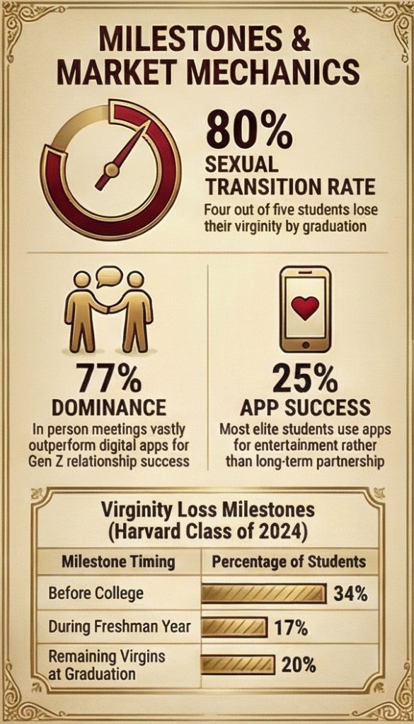 For pre-med dating, in-person approaches outperform apps by a ratio of three to one. Four out of five college students lose their virginity before graduation. The window is open. Use it.